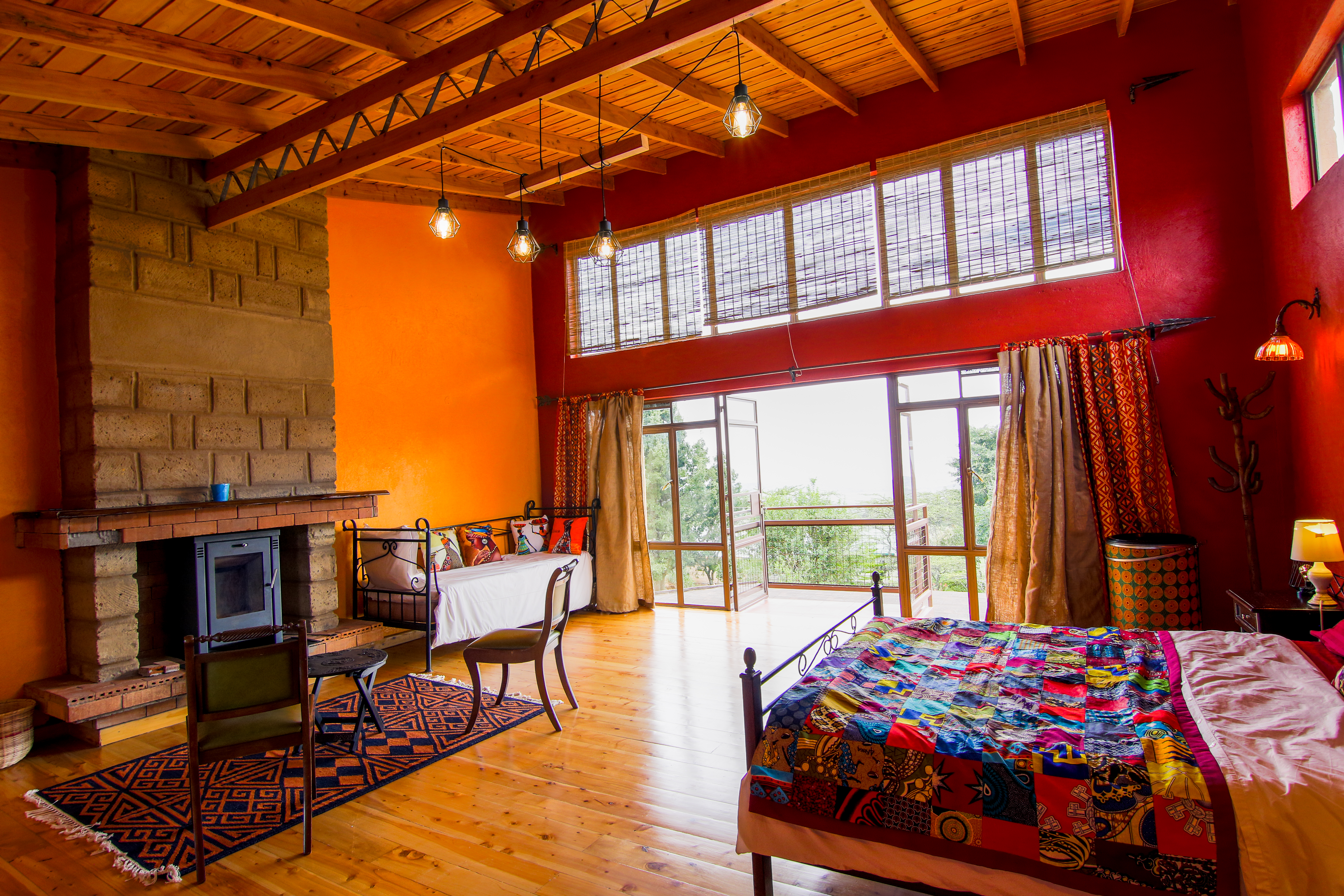 Step into the well-equipped, modern kitchen boasting conveniences like a dishwasher and microwave, and let your culinary desires take flight. If you wish to sit back, there are dedicated, talented staff on sight. The sprawling main room captivates with its open-plan design, seamlessly blending the living, kitchen, and dining areas around a central fireplace. From here, venture onto the patio, a haven of romance and cozy relaxation, where chilly Naivasha evenings are kept warm by an antique wood cooking stove.